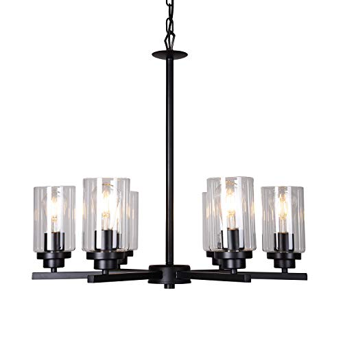 Get Special Price Doowin Chandelier Dining Room Lighting Fixtures Hanging, 6 Light Modern Chandelier Light Fixture Ceiling Light Dining Room Lights Black Finished with Clear Glass Lampshade for Entryway Foyer Kitchen